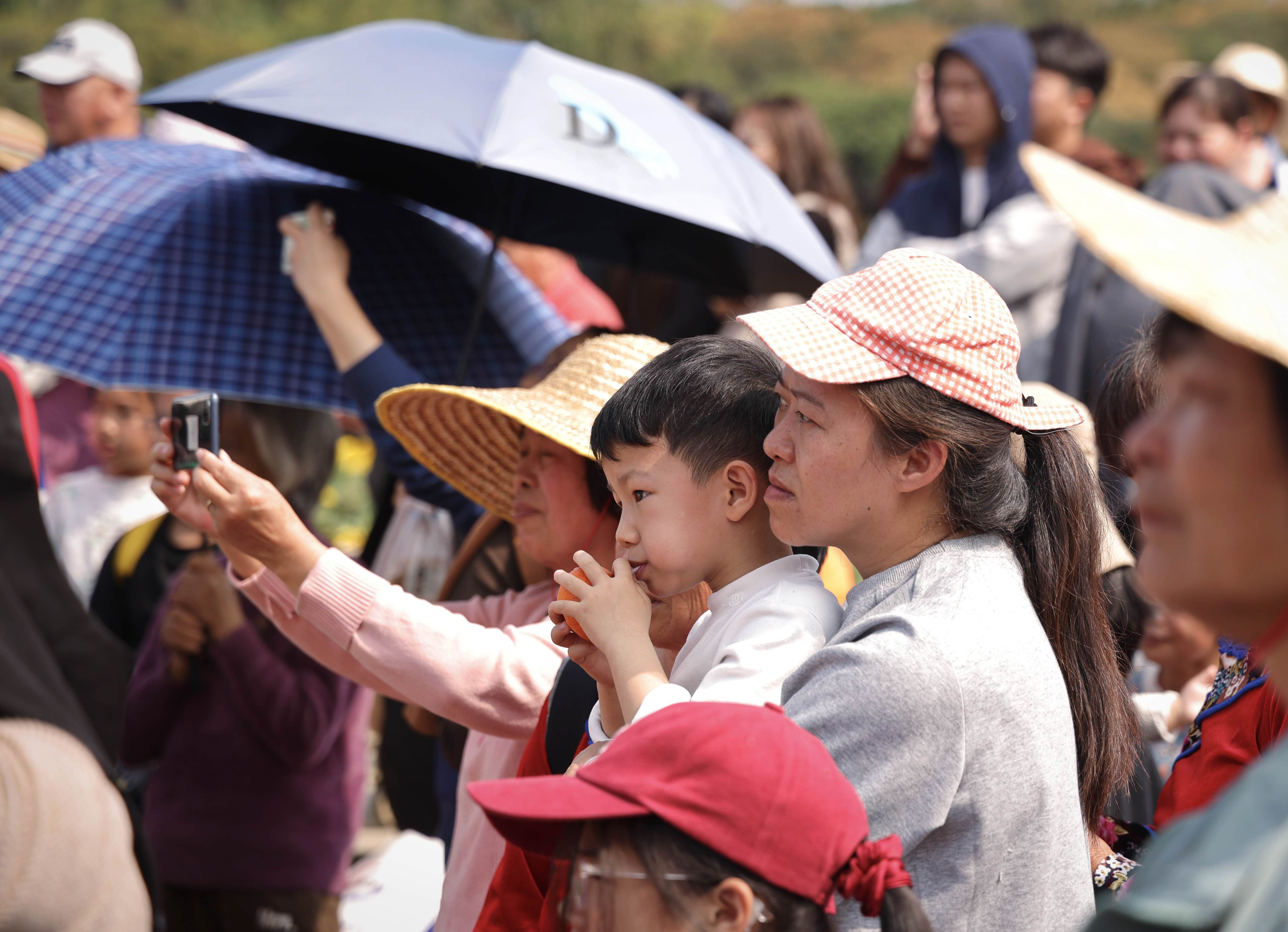 现场,葵花种植户介绍,今年他种植了油葵和食用葵花两个品种,油葵预计能出油约1.5万斤,食用葵花既能吸引游客观光,葵花籽还能当零食售卖,仅这一项预计增收就有10多万元。去年试种打底后,今年种植技术更加娴熟,葵花盘和籽粒都比去年更出众。这一切都离不开镇、村和农业部门的帮扶:优质种子统一发放,华南农业大学的专家从下种到施肥、防虫害全程指导,镇里还专门派技术员跟进食用葵花的试种工作;村里不仅帮忙协调土地流转,还主动带游客赏花,联系榨油坊、拓宽销路,让种植户倍感安心。